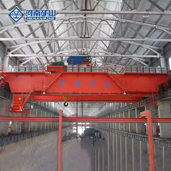 The QDY series double girder electric overhead traveling ladle crane is engineered for demanding metallurgical operations, including the safe and efficient handling of molten steel in steel mills and foundries. Its robust construction integrates a main beam, connecting beam, long-travel assembly, lifting trolley, and a high-performance hook system with wire rope. The complete setup also features cab controls and a sophisticated electrical management system.