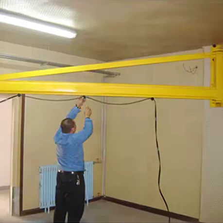 During operation, the jib arm rotates smoothly, driven by a precision reducer gear system. Alternatively, the suspended load can be manually positioned using the provided pull ring, offering flexible and precise movement control.